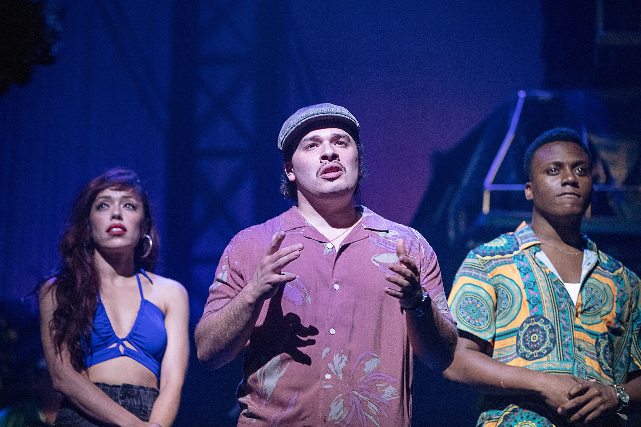 The Pennsylvania Shakespeare Festival (the PSF) is now presenting the hit musical In the Heights until July 2.Yes, you heard that correctly. The PSF isn’t only Shakespeare, but also includes a hit contemporary musical. In the Heights has music and lyrics by Lin-Manuel Miranda, book by Quiara Alegria Hudes, and was conceived by Lin-Manuel Miranda. It is played in the lovely, new Main Stage theatre at the Labuda Performing Arts Center at DeSales University. With only 473 seats, it affords an intimate, personal connection with the stage and the actors. And what actors they are. A largely Latin cast brings real flair to the material presented on stage. Hector Florez, Jr., is the Latin Assistant Choreographer and Dance Captain, for only one example. According to the program, “Time/Place: July 3 through 5 during a heat wave, one block in Washington Heights, Manhattan.” Perhaps you’ve seen the film, or seen a production of the musical. Many this evening had apparently never experienced either one. They gasped, they moaned in sympathy with the actions on stage. The set, costumes, and stage craft were of professional caliber, as were the experienced actors, many of whom were members of Actors’ Equity. All the actors had great and memorable star turns, while a few shone even more brightly. Sonny, played by Luis-Pablo Garcia, was a knockout. Not only could he sing, deliver lines to land a punch line with comedic aplomb, but do somersaults, aerial leaps, and land in a split. He is a star of the future. Ryan Reyes, as an especially handsome Usnavi, Ralphie Rivera de Jesus as a jittery, somersaulting Graffiti Pete, Jacquelin Lorraine Schofield as Abuela Claudia surprised with her knock-em-dead, roof-raising rendition of “Paciencia Y Fe (Patience and Faith)”. Kevin Matthew Solis was Piraguero, the flavored, shaved-ice vendor. Director Valeria Cossu and Musical Director Walter “Bobby” McCoy brought out the best efforts of dancers, singers, and musicians. An amusing moment occurred before the curtain rose. A stentorian, female voice was overheard saying to her friend or spouse, “No, it’s not Brooklyn Heights, but Washington Heights. No wonder you never heard of it. Look at the stage. The place is a dump!” You owe it to yourself to drive through the bucolic landscape on the way to the beautiful PSF to experience a relaxed, unhurried evening, maybe having a meal, experiencing a great musical, all with plenty of free parking. In the Heights will be on the Main Stage until July 2. For information and tickets, call 610-282-9455, or visit www.pashakespeare.org . There are many more offerings throughout the summer, all to be seen at their website.