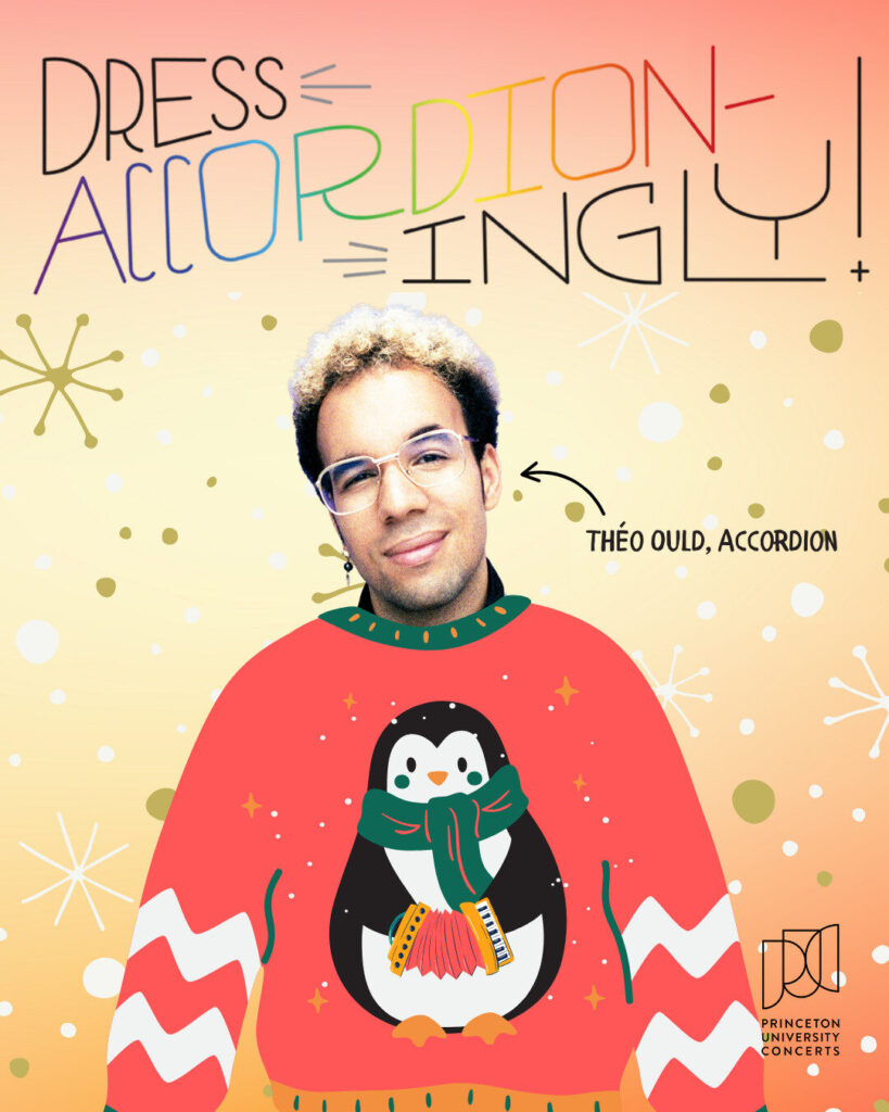 B-sharp, B-natural, Be YOU! Join our festive Ugly Sweater Party for beautiful members of the LGBTQIA+ community and allies—with snacks, games, a karaoke room, and a concert by accordionist Théo Ould. Dress accordion-ingly for a chance a prize in the ugly sweater contest!