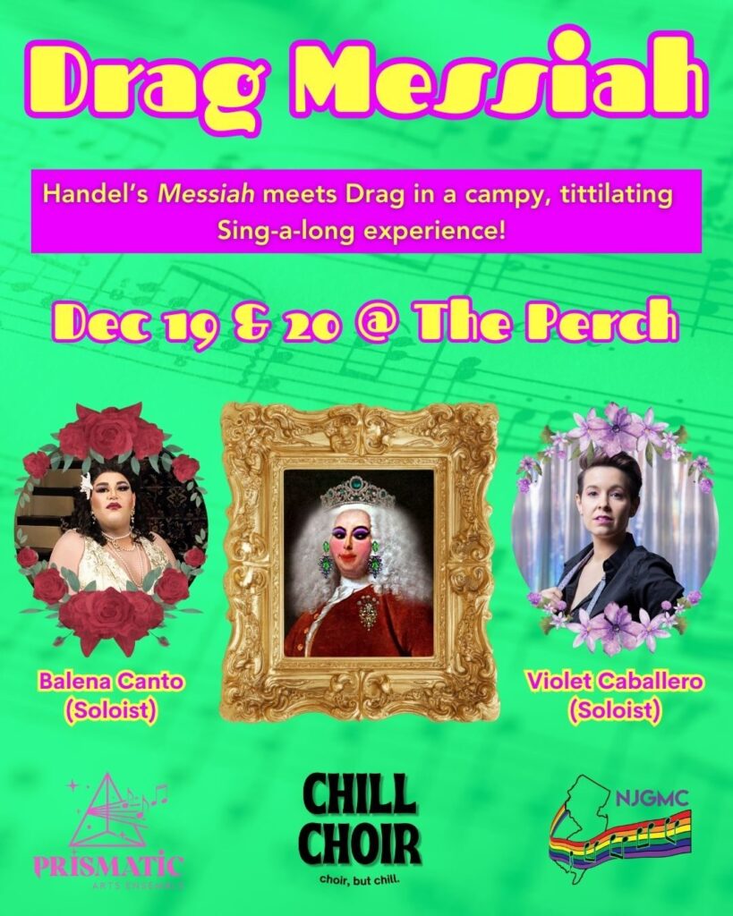 Join Philly’s opera singing drag performers, Balena Canto & Violet Caballero, as they sashay through Handel’s classic alongside the combined choral forces of Fishtown’s Chill Choir, members of the New Jersey Gay Mens Chorus, and YOU!