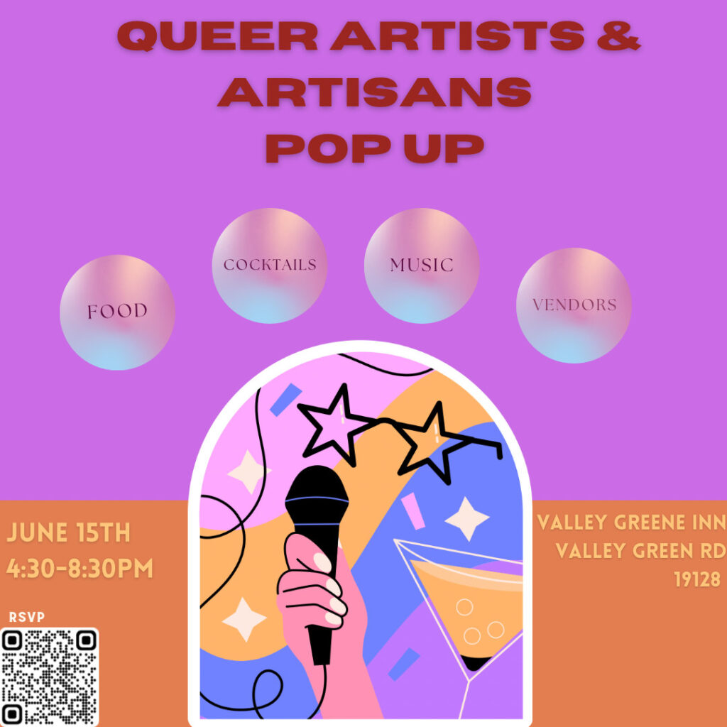 Looking to showcase your talent? Join us on June 15th from 4:30pm-8:30pm at Valley Green Inn! Enjoy a night of live music, curated cocktails and bites and a chance to meet with other queer artists and artisans in the area. We’re also looking for featured acts and vendors for this event! If you’re interested please email community.ethereality@gmail.com