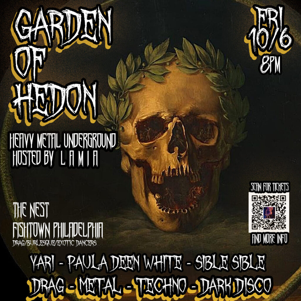 https://www.facebook.com/lvmivart/Lamia, The Cursed Queen is a drag performer and host in Philadelphia known for curating theatrical, boundary-pushing shows like Slayher: Philly’s Only All Heavy Metal Drag Show and Shapeshift, combining drag, fashion, performance art, and dark pop aesthetics