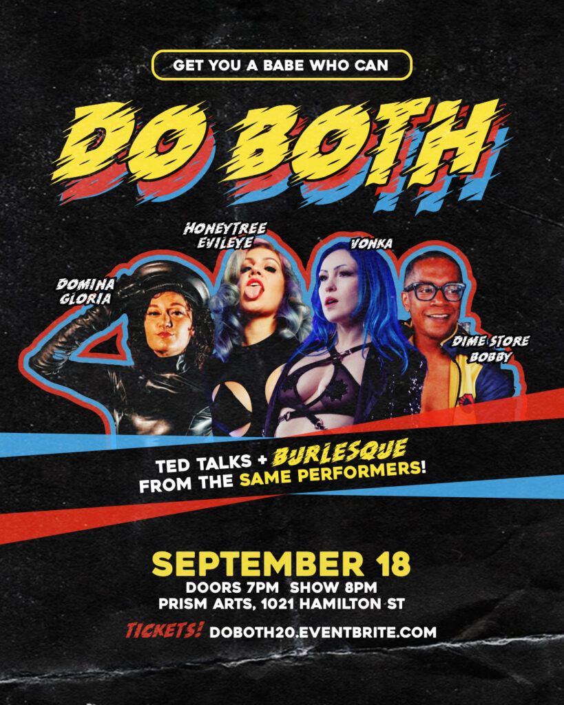 Proving that we can be both sexual and intellectual, Do Both combines TEDx-style talks and burlesque- by the same performers. In the first half, performers will speak on a topic of their expertise and in the second half they’ll serve up the tease!