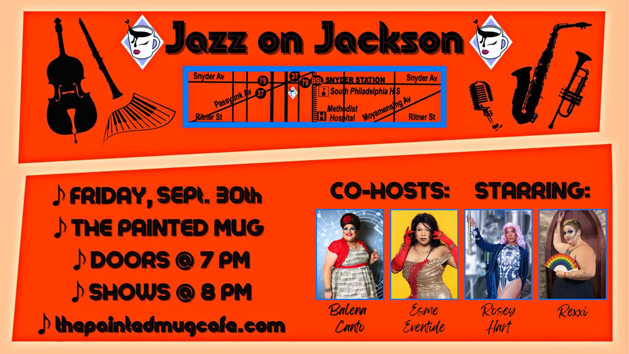 In recent years, jazz has been overlooked in the drag/burlesque world. So, we decided to curate a show paying homage to this incredible and varied art form. Join co-hosts Balena Canto and Esme Eventide along with two very special guests for this queer artist tribute, Jazz on Jackson!