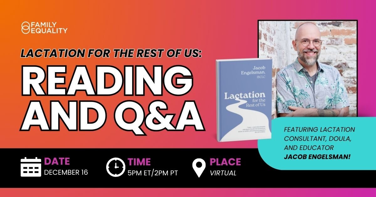 Looking for information on chest-feeding and lactation that isn’t gendered and geared exclusively towards cisgender women? Join us for a virtual reading and discussion with international board certified lactation consultant, doula, and educator, Jacob Engelsman, author of Lactation for the Rest of Us: A Guide for Queer and Trans Parents and Helpers.