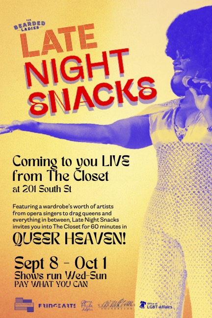Prepare for an unapologetically queer performance art pop up in partnership with FringeArts, Opera Philadelphia, and The Mayor’s Office Of LGBT Affairs. The Bearded Ladies Cabaret is happy to be bringing back their annual LATE NIGHT SNACKS SHOW. These after-hour performances feature different artists every night from opera singers to drag queens, cabaret stars to art clowns, and everything in between. Every show will be unique and with over 75+ local and national performers guests will leave hungry to come back every night. The shows may include artistic experimentation, adult content, consensual touch, earworms, nudity, jubilation, great selfie material, and rampant queerness. The shows will be on Wednesdays and Thursdays at 9 p.m., on Fridays and Saturdays at 9 p.m. and 11 p.m., and on Sundays at 3:30 p.m. (Family Snacks) and 9 p.m. Advanced tickets are pay-what-you-can starting at $10+. A limited number of $0+ pay-what-you-can tickets will be available at the door. Family Snacks performances are pay-what-you-can for adults and kids attend free. Get ready for a show like you’ve never seen before! Tickets are now on sale and can be purchased here.