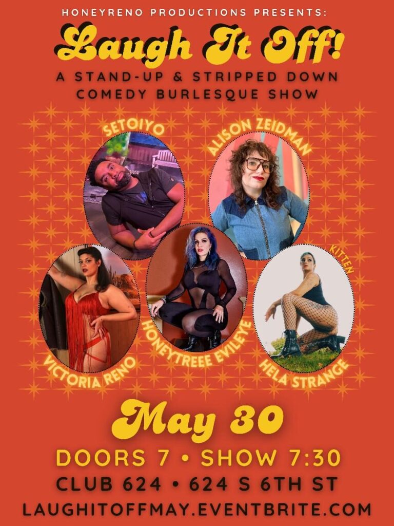 HoneyReno productions presents a night of stand up and stripping down, with comedy sets by nationally renowned comedians Setoiyo and Alison Zeidman and burlesque by Victoria Reno and HoneyTree EvilEye.