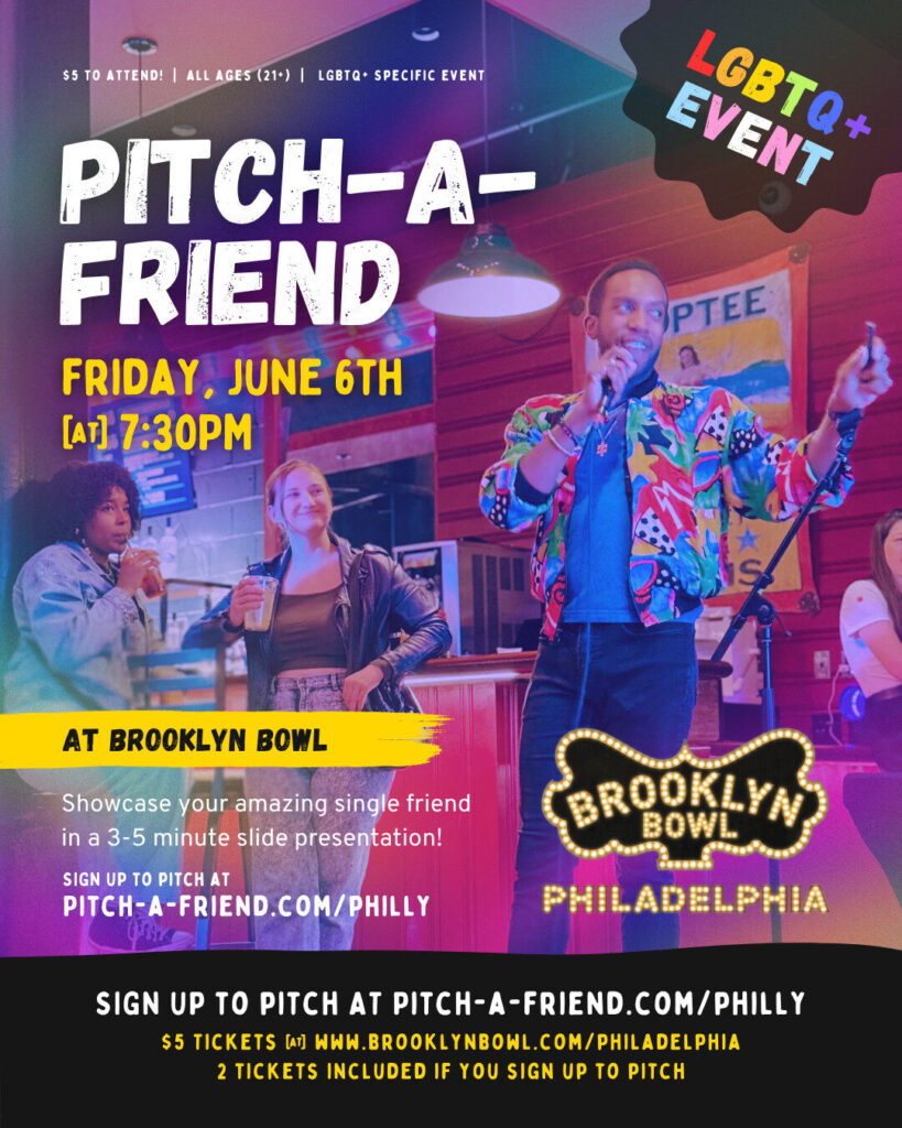No pressure to pitch! Come vibe, cheer on the presenters, and meet some stellar singles. It’s all about making real connections in a playful, welcoming space. After the pitches, we roll right into our Single Mingle Mixer – grab a drink, make a move, and see where the night takes you. ✨ 🎟️ Tickets Required (Buy here) A portion of each ticket benefits Lavender Panzies, a Philly-based FLINTA* community celebrating queer joy through mutual aid, roller discos, yoga, and of course – Qamp. Don’t miss this one-of-a-kind night of laughter, sparks, and community magic.