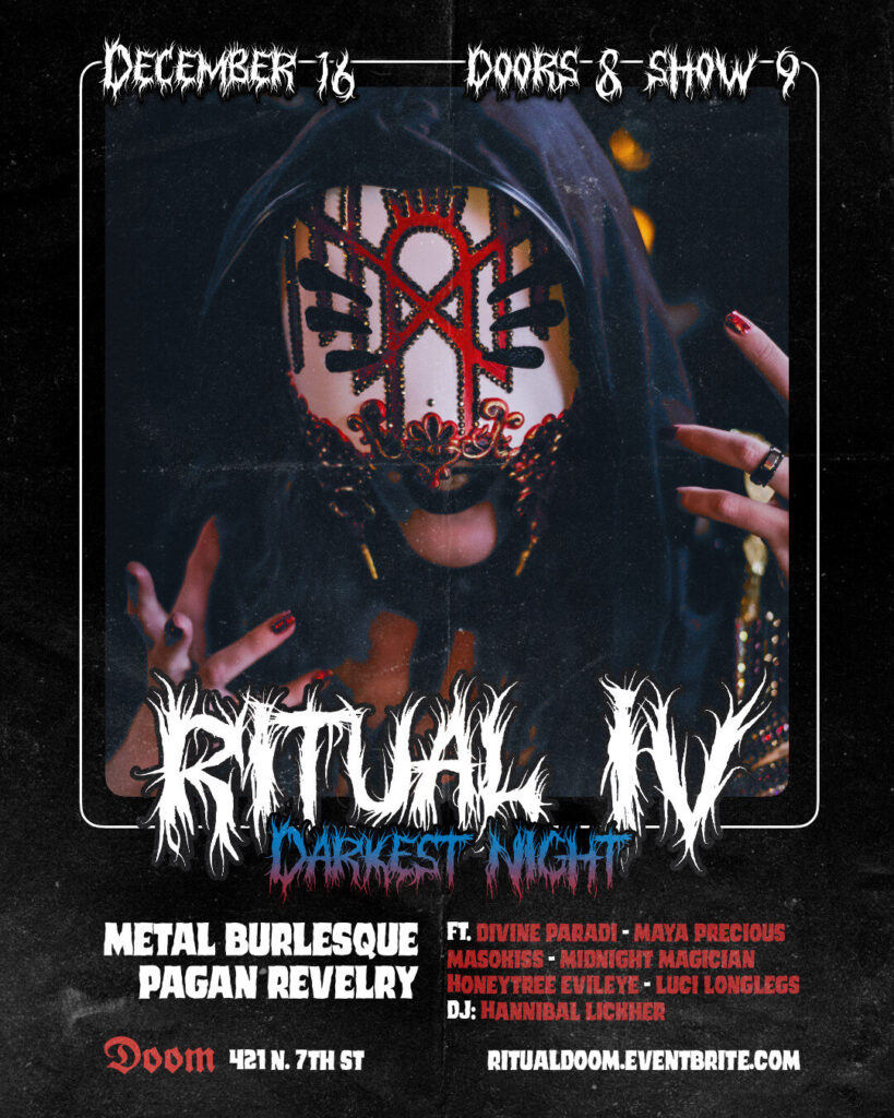 Join us at Doom Bar, Philly’s premiere metal bar, for the fourth night of Ritual, a metal burlesque experience. As the nights get longer, there is more need for communal debauchery.