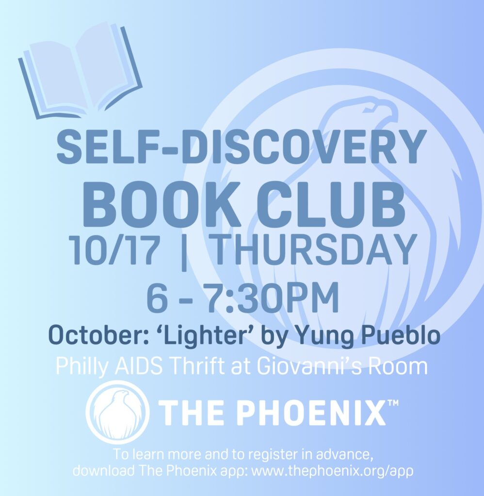 A monthly book club for LGBTQ+ folx and allies. Category is non-fiction with themes of personal growth + development, mental + holistic health, sobriety + recovery, and empowerment. October’s selection is ‘Lighter’ by Yung Pueblo.