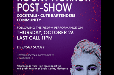 ROCKY HORROR POST-SHOW COCKTAILS • CUTE BARTENDERS • COMMUNITY Following the 7:30PM performance on Thursday, October 23 – Last Call 11PM Featuring DJ Brad Scott All proceeds from High Tea support the non-profit mission of Bucks County Playhouse