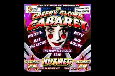 Dead Flowers + Nutmeg present The Creepy Clown Cabaret! Come in costume and let’s get down to some official clown business. One night only! Featuring creepy clown performances by… Jett the Clown Ron Binary Mister E. + Envy